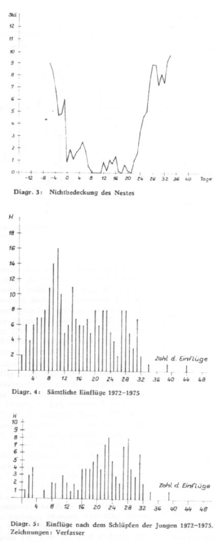 Over a 4 year period of time the presence and activities of Apus apus in the nest were measured with the help of an automatic scales. Data of the covering of the nest, average of the first and the last flight activities were given as well as the number of flights per day during the whole stay and the period of feeding in general. Furthermore Weitnauer was confirmed with his discovery that breeding birds do not spend the night on the wing, but return to their nesting site. T.