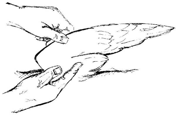 in the bird’s shoulder girdle are the filigree silver-fork bone and
