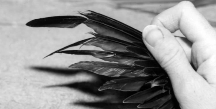 e.g. from a pigeon feather, which is cut open lengthways, pushed