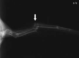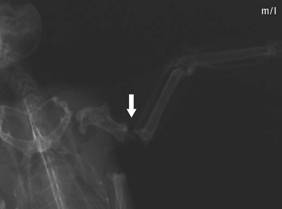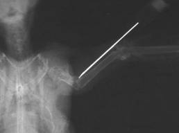 intramedullary pin (IM pin, arrow: nail exit). Photo: C. Haupt