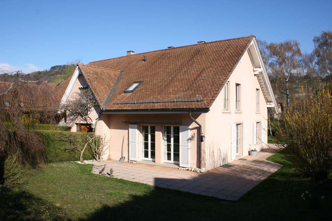 d’une hauteur de 8 m au faîte du toit, se trouve dans un quartier de