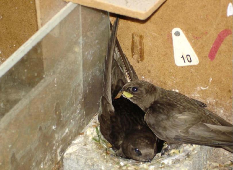 Erich Kaiser observes a colony of about 60 breeding pairs of Common Swifts. He