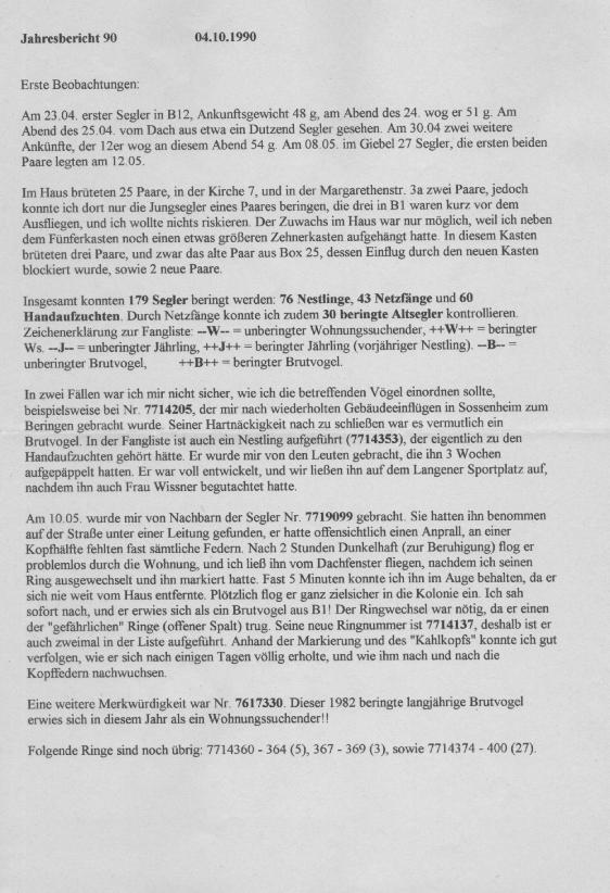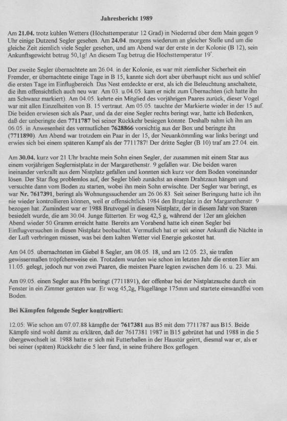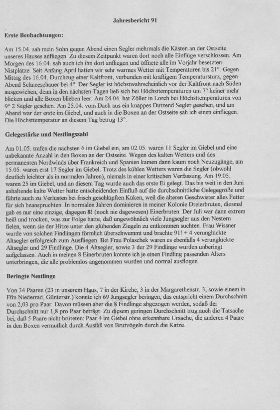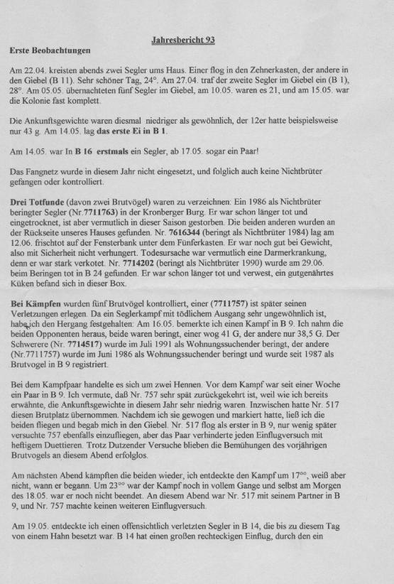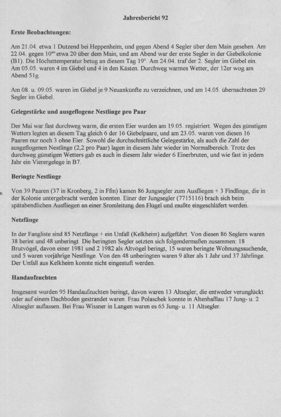 Erich (1992): Populationsdynamik einer Mauersegler- (Apus apus) Kolonie