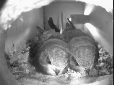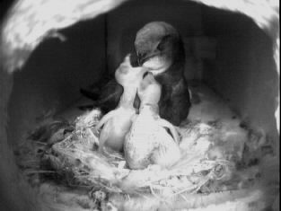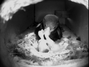 busily preening at the back of the nestbox, appeared on his TV screen. The