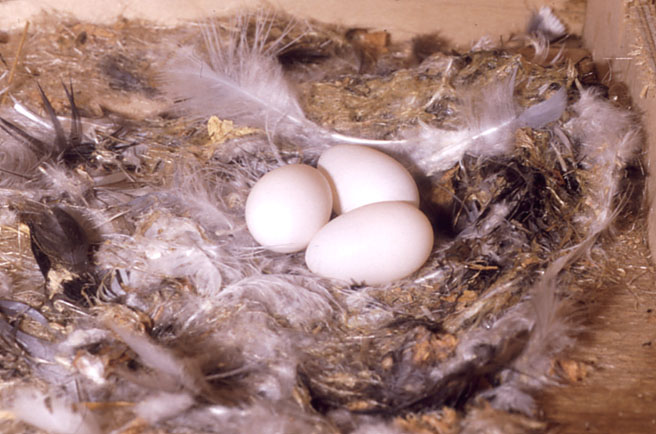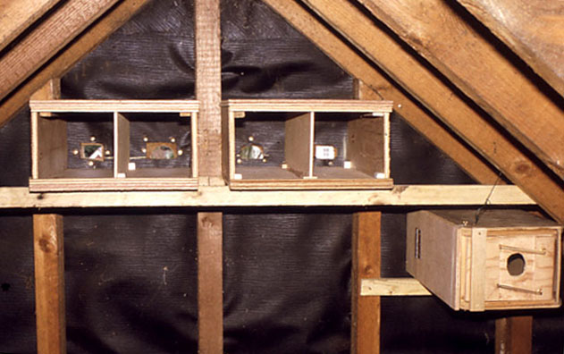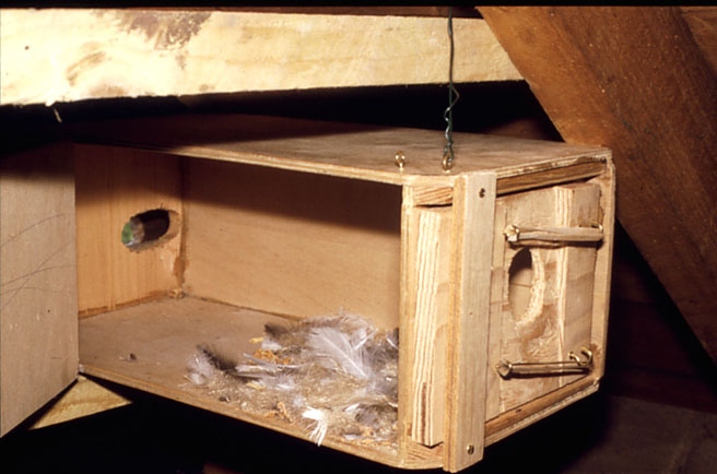 loft. He made a small viewing hole in the side of the nestbox enabling him to