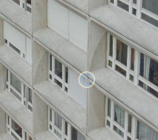 A nesting place in a tower block in Paris, France, situated between the 25th and 26th  floors, at about 70m above ground level.